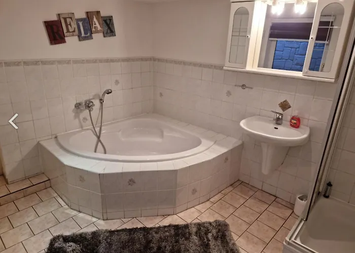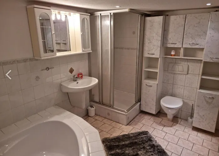 A Ferienhaus "Am Schlossbuehel" Fuer 9 Personen dispõe de casa de banho com banheira e casa de banho separada. Secador de cabelo, lençóis de banho e toalhas estão incluídos para aumentar o seu conforto.